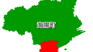 徳島県海陽町(かいようちょう)の場所を、矢印などの記号を用いて分かりやすく示した画像です。背景を透過したPNG形式で作成しています。