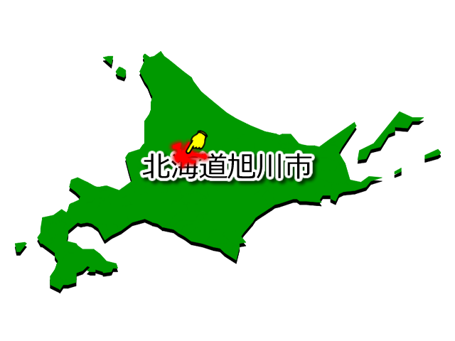北海道旭川市を示す画像を元に、目的地案内や出身地説明、ルート案内や学習コンテンツなどにご活用ください。