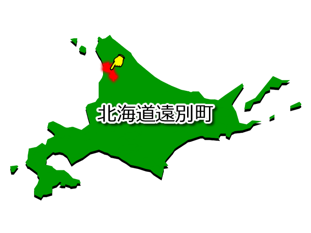北海道遠別町を示す画像を元に、目的地案内や出身地説明、ルート案内や学習コンテンツなどにご活用ください。