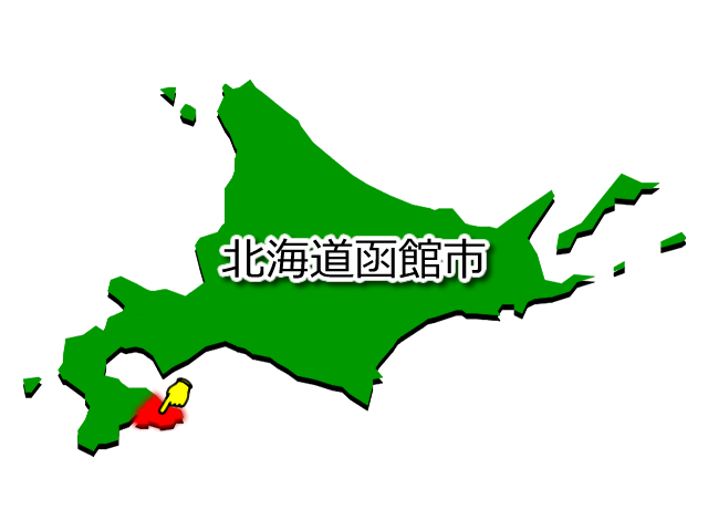 北海道函館市を示す画像を元に、目的地案内や出身地説明、ルート案内や学習コンテンツなどにご活用ください。