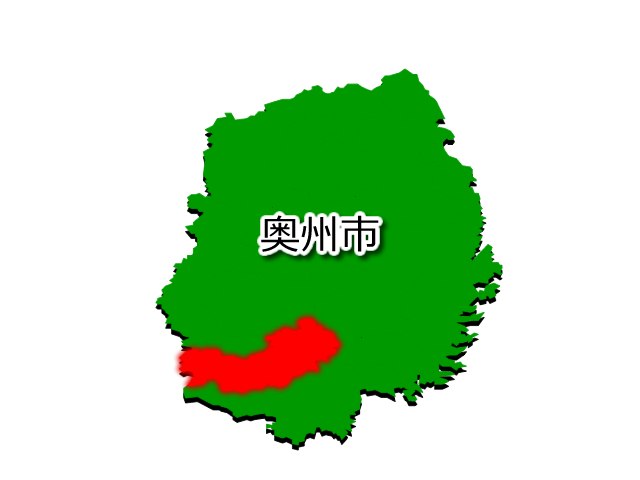 岩手県奥州市を示す画像を元に、目的地案内や出身地説明、ルート案内や学習コンテンツなどにご活用ください。