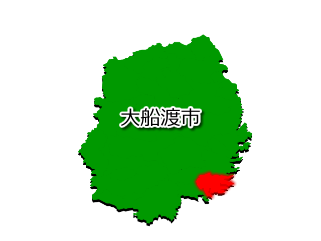 岩手県大船渡市を示す画像を元に、目的地案内や出身地説明、ルート案内や学習コンテンツなどにご活用ください。