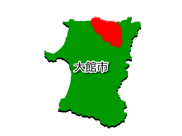 秋田県大館市を示す画像を元に、目的地案内や出身地説明、ルート案内や学習コンテンツなどにご活用ください。