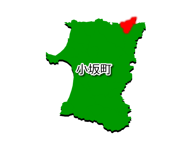 秋田県小坂町を示す画像を元に、目的地案内や出身地説明、ルート案内や学習コンテンツなどにご活用ください。