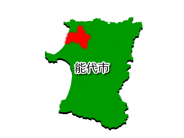 秋田県能代市を示す画像を元に、目的地案内や出身地説明、ルート案内や学習コンテンツなどにご活用ください。
