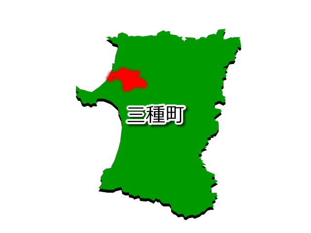 秋田県三種町を示す画像を元に、目的地案内や出身地説明、ルート案内や学習コンテンツなどにご活用ください。