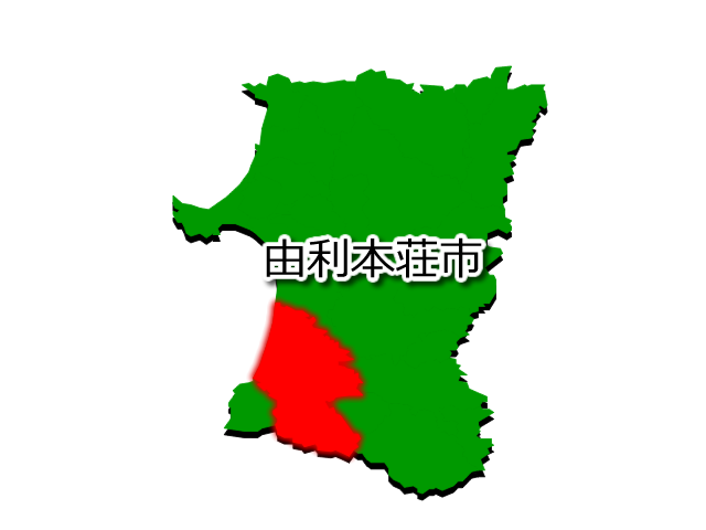 秋田県由利本荘市を示す画像を元に、目的地案内や出身地説明、ルート案内や学習コンテンツなどにご活用ください。