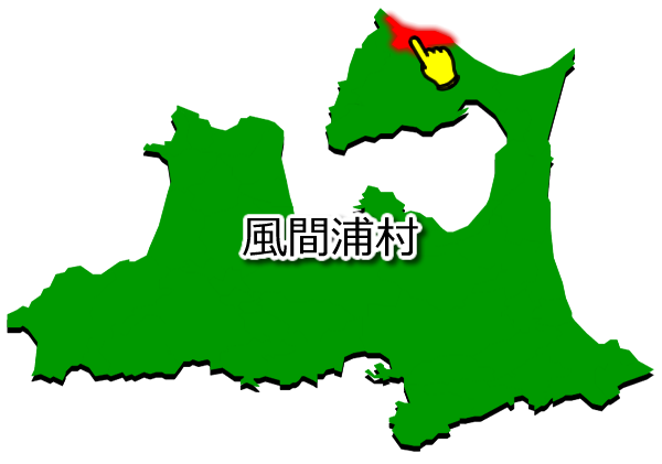青森県風間浦村(かざまうらむら)の場所を示す画像です。PNG透明形式ファイルです。