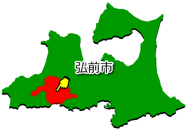 青森県弘前市を示す画像を元に、目的地案内や出身地説明、ルート案内や学習コンテンツなどにご活用ください。