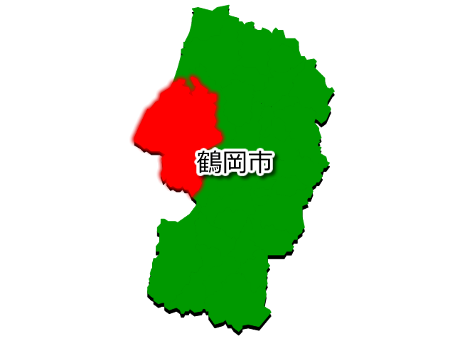 山形県鶴岡市(つるおかし)の場所を示す画像です。PNG透明形式ファイルです。