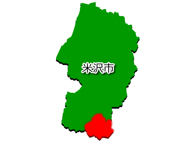山形県米沢市を示す画像を元に、目的地案内や出身地説明、ルート案内や学習コンテンツなどにご活用ください。