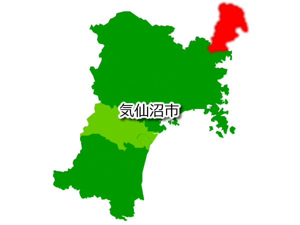 宮城県気仙沼市(けせんぬまし)の場所を示す画像です。PNG透明形式ファイルです。