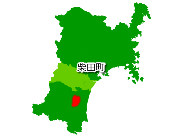 宮城県柴田町を示す画像を元に、目的地案内や出身地説明、ルート案内や学習コンテンツなどにご活用ください。