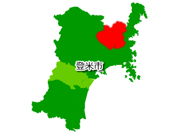 宮城県登米市を示す画像を元に、目的地案内や出身地説明、ルート案内や学習コンテンツなどにご活用ください。