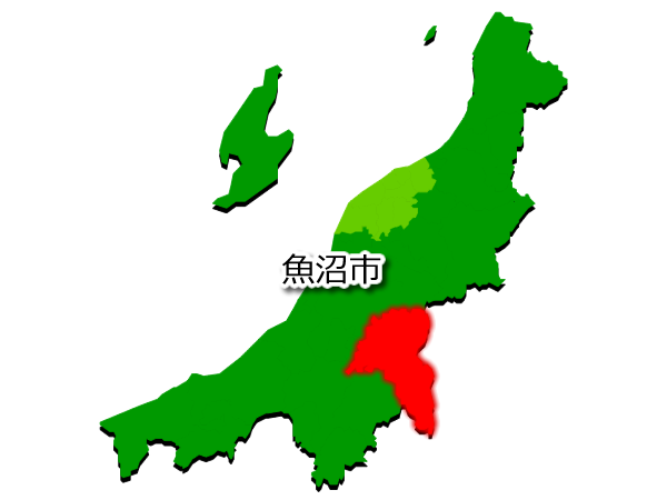 新潟県魚沼市を示す画像を元に、目的地案内や出身地説明、ルート案内や学習コンテンツなどにご活用ください。