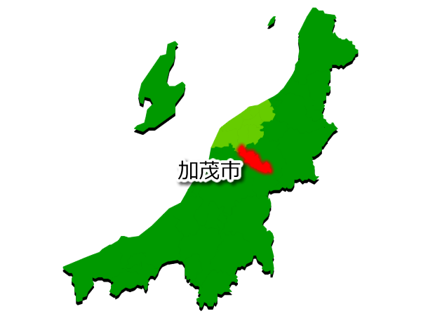 新潟県加茂市を示す画像を元に、目的地案内や出身地説明、ルート案内や学習コンテンツなどにご活用ください。