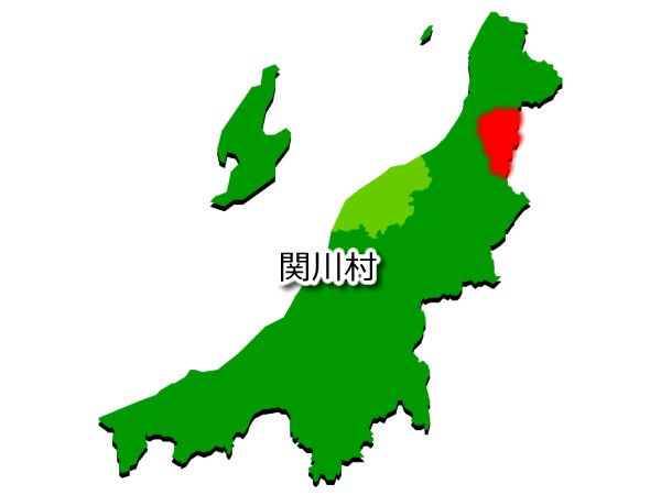 新潟県関川村を示す画像を元に、目的地案内や出身地説明、ルート案内や学習コンテンツなどにご活用ください。