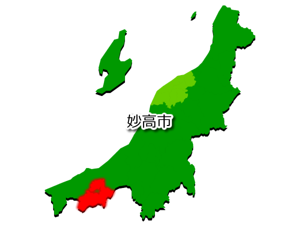 新潟県妙高市を示す画像を元に、目的地案内や出身地説明、ルート案内や学習コンテンツなどにご活用ください。