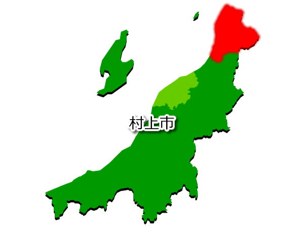 新潟県村上市を示す画像を元に、目的地案内や出身地説明、ルート案内や学習コンテンツなどにご活用ください。