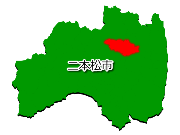 福島県二本松市を示す画像を元に、目的地案内や出身地説明、ルート案内や学習コンテンツなどにご活用ください。