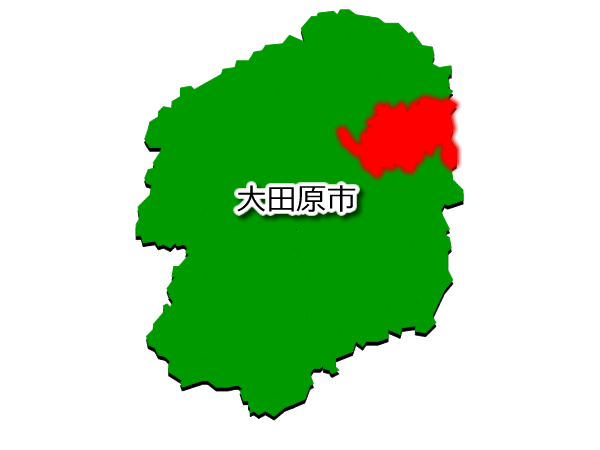 栃木県大田原市を示す画像を元に、目的地案内や出身地説明、ルート案内や学習コンテンツなどにご活用ください。