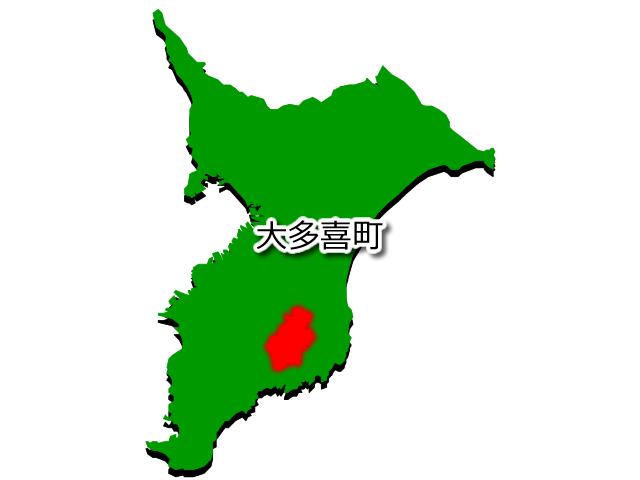 千葉県大多喜町(おおたきまち)の場所を示す画像です。PNG透明形式ファイルです。