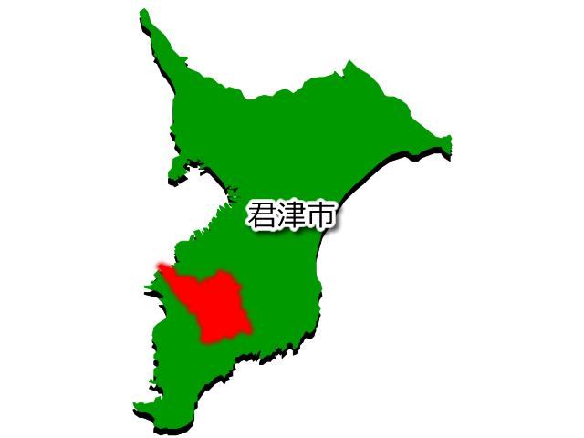 千葉県君津市を示す画像を元に、目的地案内や出身地説明、ルート案内や学習コンテンツなどにご活用ください。
