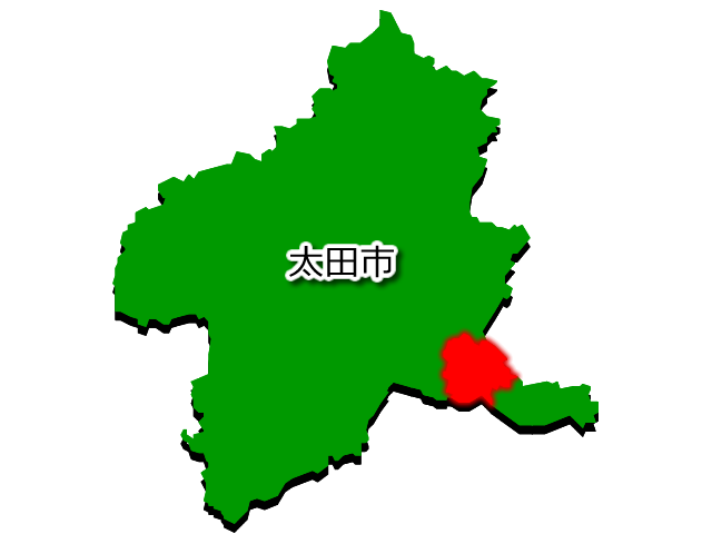 群馬県太田市を示す画像を元に、目的地案内や出身地説明、ルート案内や学習コンテンツなどにご活用ください。