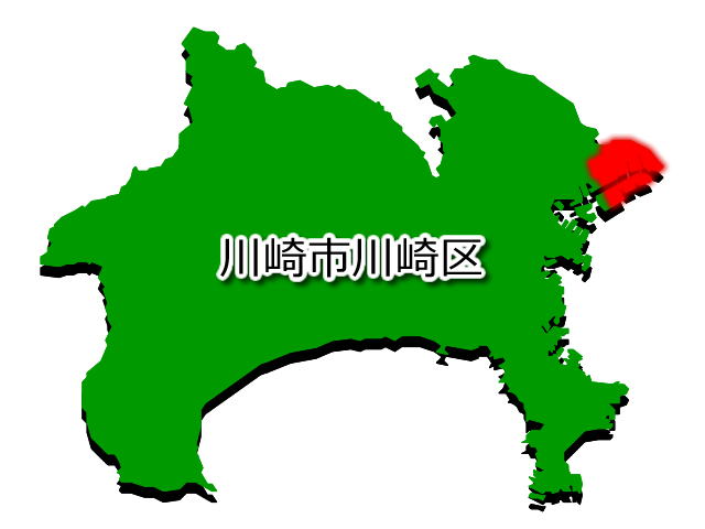 神奈川県川崎市川崎区(かわさきしかわさきく)の場所を示す画像です。PNG透明形式ファイルです。