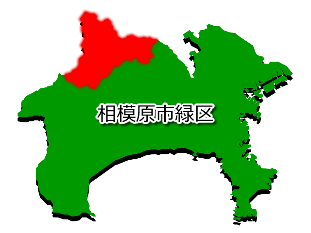 神奈川県相模原市緑区(さがみはらしみどりく)の場所を示す画像です。PNG透明形式ファイルです。