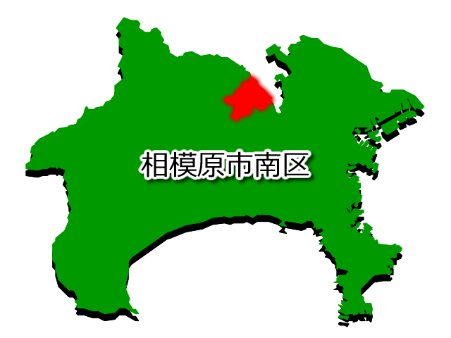神奈川県相模原市南区(さがみはらしみなみく)の場所を示す画像です。PNG透明形式ファイルです。