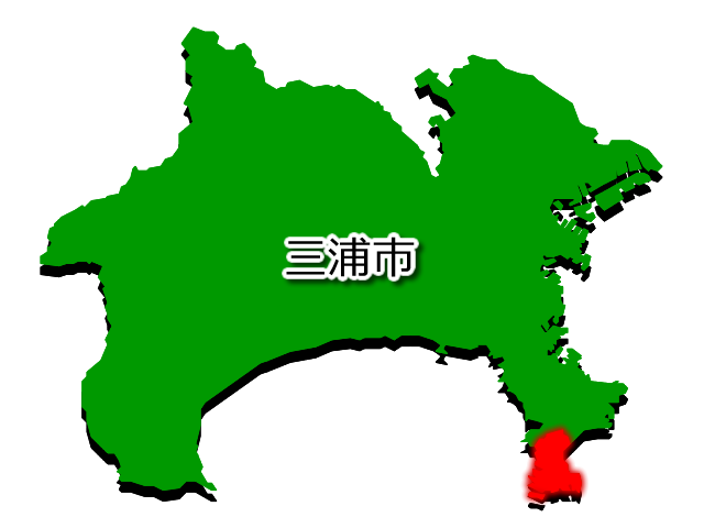 神奈川県三浦市(みうらし)の場所を示す画像です。PNG透明形式ファイルです。