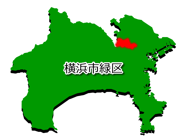 神奈川県横浜市緑区(よこはましみどりく)の場所を示す画像です。PNG透明形式ファイルです。