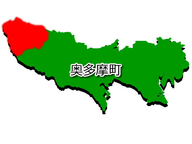 東京都奥多摩町(おくたままち)の場所を示す画像です。PNG透明形式ファイルです。