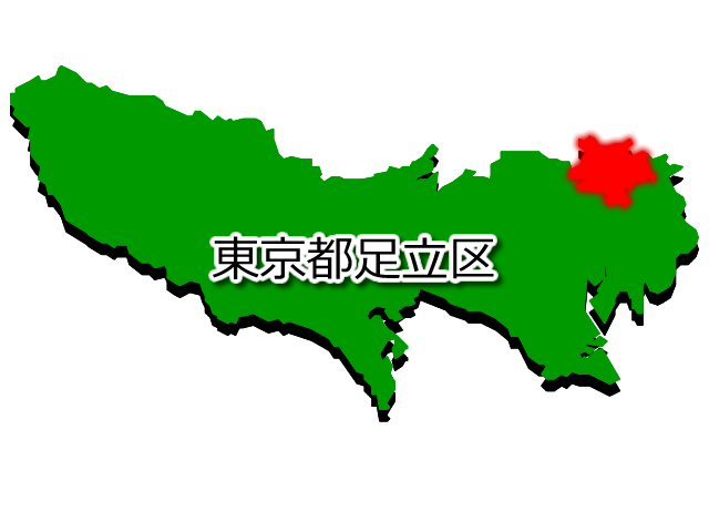 東京都東京都足立区を示す画像を元に、目的地案内や出身地説明、ルート案内や学習コンテンツなどにご活用ください。