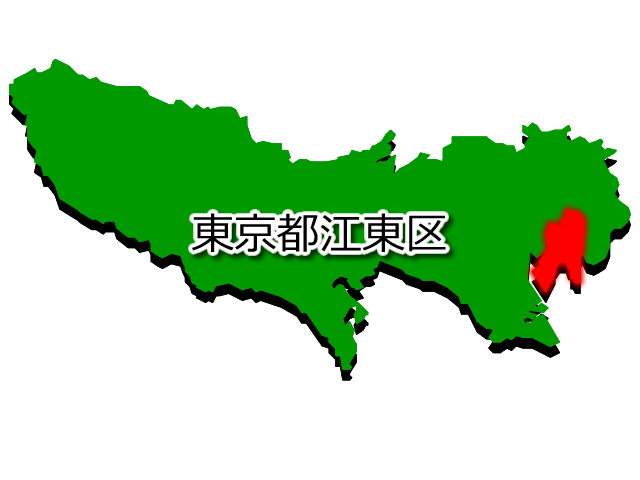 東京都東京都江東区(とうきょうとこうとうく)の場所を示す画像です。PNG透明形式ファイルです。