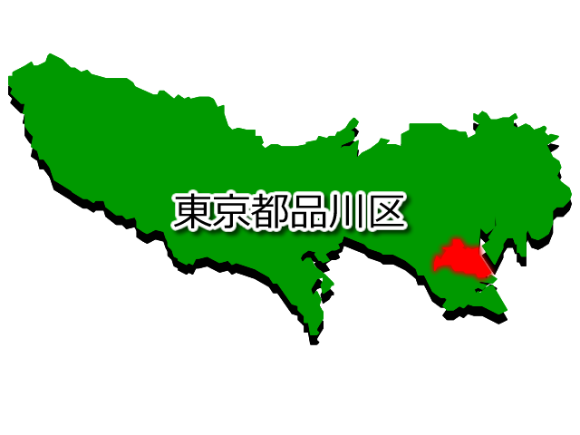 東京都東京都品川区(とうきょうとしながわく)の場所を示す画像です。PNG透明形式ファイルです。