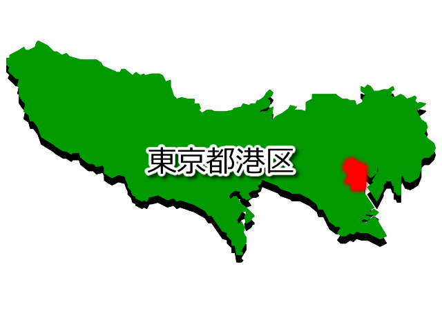 東京都東京都港区(とうきょうとみなとく)の場所を示す画像です。PNG透明形式ファイルです。