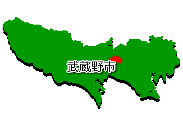 東京都武蔵野市を示す画像を元に、目的地案内や出身地説明、ルート案内や学習コンテンツなどにご活用ください。