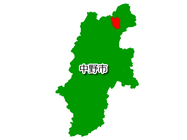 長野県中野市を示す画像を元に、目的地案内や出身地説明、ルート案内や学習コンテンツなどにご活用ください。