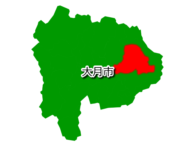 山梨県大月市(おおつきし)の場所を示す画像です。PNG透明形式ファイルです。