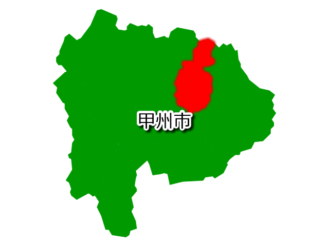 山梨県甲州市(こうしゅうし)の場所を示す画像です。PNG透明形式ファイルです。