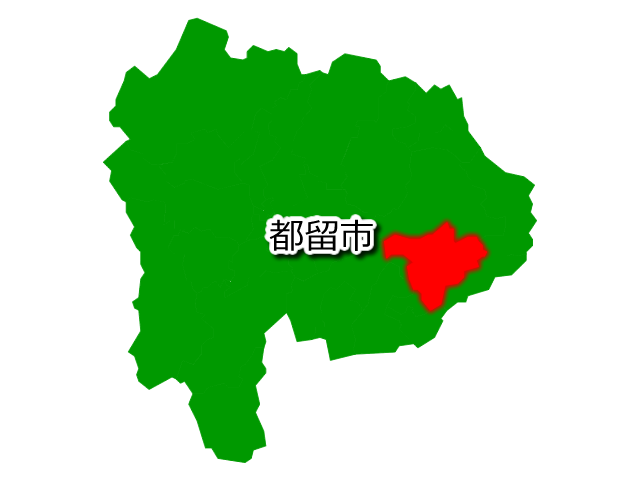 山梨県都留市を示す画像を元に、目的地案内や出身地説明、ルート案内や学習コンテンツなどにご活用ください。