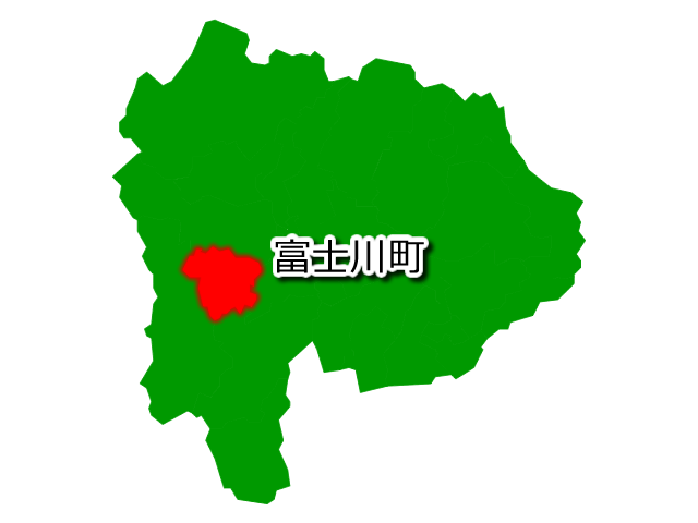 山梨県富士川町を示す画像を元に、目的地案内や出身地説明、ルート案内や学習コンテンツなどにご活用ください。