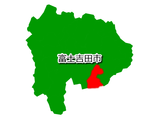 山梨県富士吉田市を示す画像を元に、目的地案内や出身地説明、ルート案内や学習コンテンツなどにご活用ください。