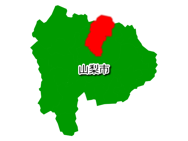 山梨県山梨市を示す画像を元に、目的地案内や出身地説明、ルート案内や学習コンテンツなどにご活用ください。