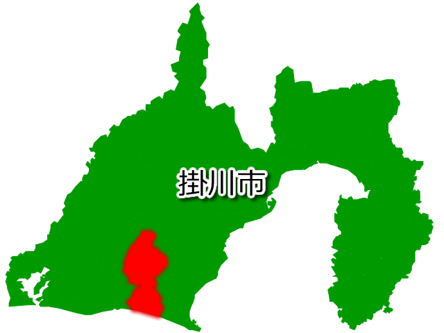 静岡県掛川市を示す画像を元に、目的地案内や出身地説明、ルート案内や学習コンテンツなどにご活用ください。