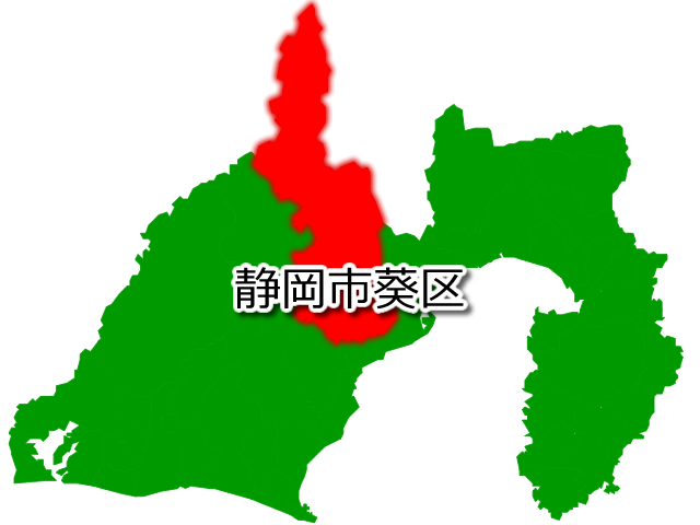 静岡県静岡市葵区を示す画像を元に、目的地案内や出身地説明、ルート案内や学習コンテンツなどにご活用ください。
