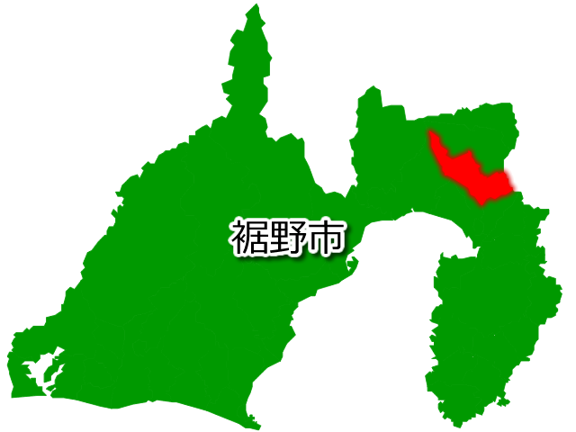 静岡県裾野市を示す画像を元に、目的地案内や出身地説明、ルート案内や学習コンテンツなどにご活用ください。