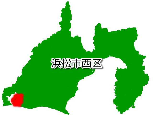 静岡県浜松市西区を示す画像を元に、目的地案内や出身地説明、ルート案内や学習コンテンツなどにご活用ください。